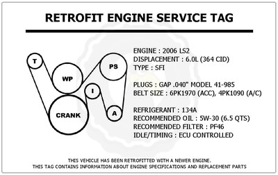 Details About 2006 Ls2 6 0l Gto Retrofit Engine Service Tag Belt Routing Diagram Decal