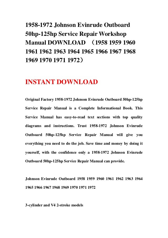 Johnson evinrude outboard motors 1956 2001 all models service manual pdf. Find your engine drill down from the year horsepower model number and engine section to get an online inventory of genuine oem and aftermarket johnson evinrude outboard parts. Your johnson evinrude model number is the key to finding the correct parts for your outboard motor. Outboard engine wiring series links.