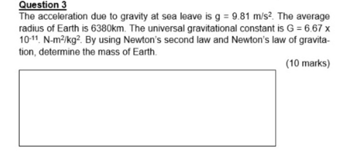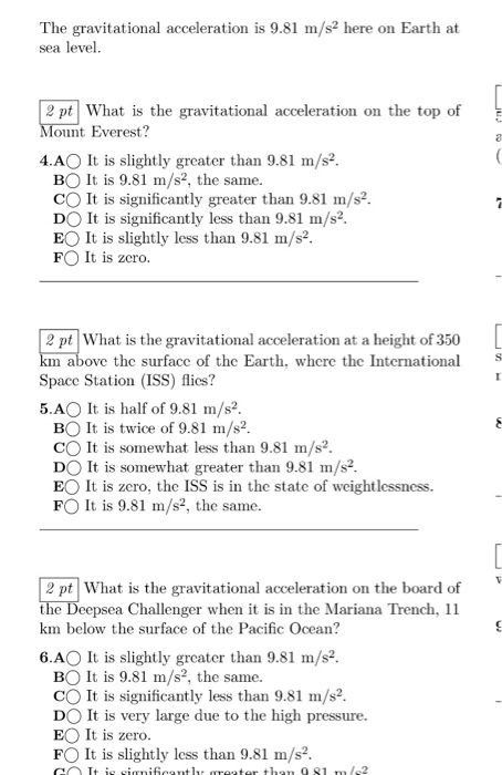 Solved The Acceleration Due To Gravity At Sea Leave Is G