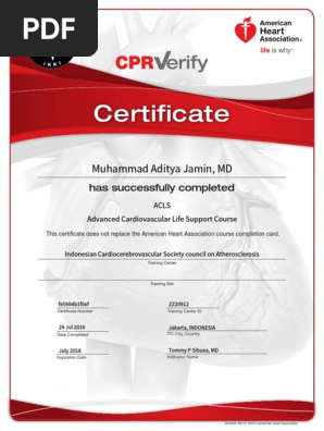 Acls certification verification. By learning a standard approach to assessing and treating cardiac emergencies as an organized team acls providers from different settings can work together effectively. To access your complete ecard profile please enter your first name last name and email address below. All classes are 100 aha guideline based. All acls course options teach the same aha science based skills and result in the same aha acls course completion card.