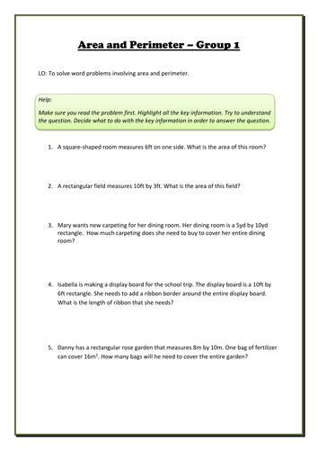 Area And Perimeter Word Problems Worksheets Pdf
