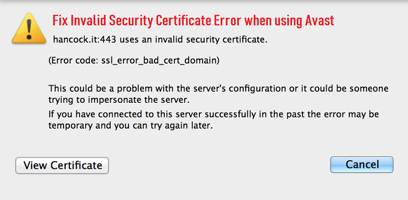 Avast Failed Ssl Certificate When Using Outlook Quantumwarp