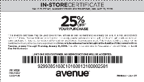Avenue Coupon 25 Off 100 Coupons Store Coupons