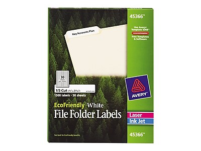 Avery Ecofriendly Laser Inkjet File Folder Labels 2 3 X 3 7 16 White 30 Labels Sheet 50 Sheets Box 45366
