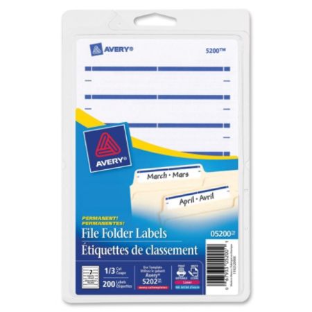 Made with a permanent adhesive these labels wont peel or curl at the edges and the dark blue stripe makes it easy to color code your office paperwork by department or name. Once the file is open type your information into the template. Amazons choice for avery 5200 labels. Avery file folder labels for laser and inkjet printers 13 cut red pack of 252 5201 42 out of 5 stars 33.