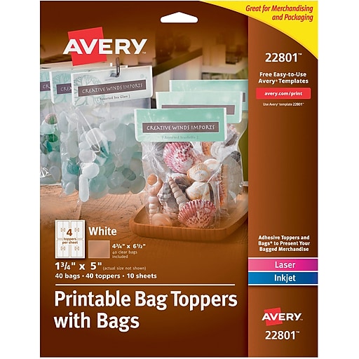 Avery Printable Bag Toppers For Laser Inkjet Printers Bags Included 1 75 X 5 Pack Of 40 22801