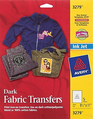 Avery Printable Heat Transfer Paper For Use On Dark Fabrics 8 5 X 11 Inkjet Printers 5 Transfers 3279