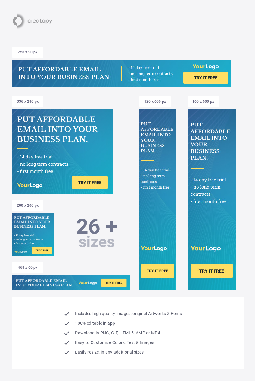 Unlimited downloads from 1650month. Check out this collection of creative web banners and ad templates which you can use to promote your business and broadcast information to a wide audience. Our wide selection of ready made templates come in all standard banner ad sizes like medium rectangle leaderboard wide skyscraper and more. Free banner templates examples.