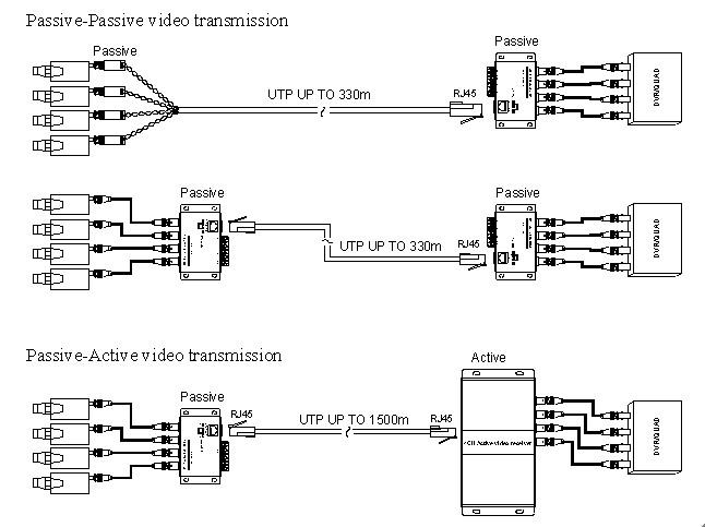 4 Channel Bnc To Rj45 Cat 5 Video Transceiver Passive