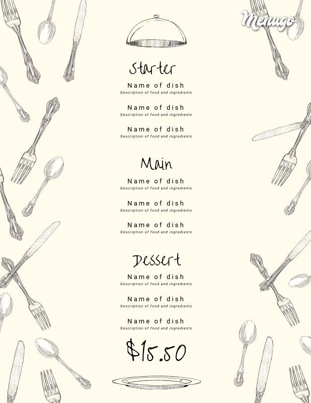 Choose a menu style from the selections shown below to create your own catering business or restaurant menu. Add custom mouth watering photos to a stylish menu template and excite your guests. From simple to fancy cute upbeat or retro theres plenty of menu template styles and options to choose from. Customize 2940 menu templates build your audiences appetite with mouthwatering menus for all cuisines and occasions.