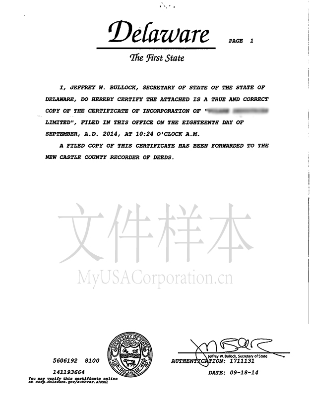 Certificate Of Incorporation Delaware