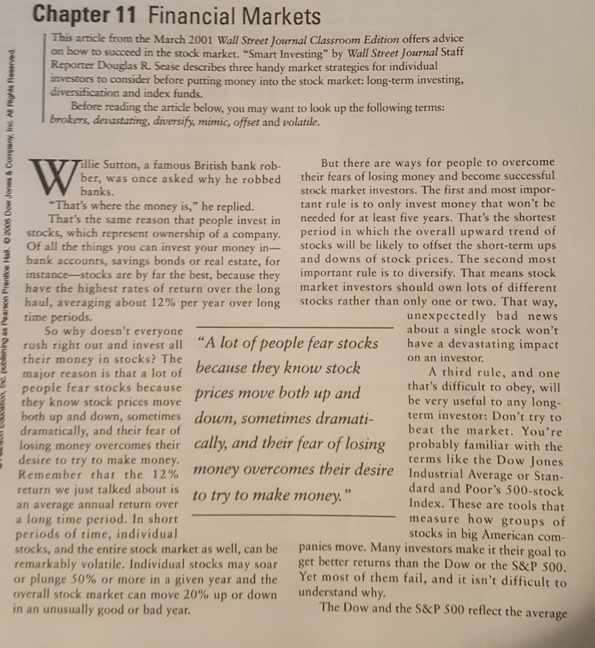 Econ Chapter 11 6 28 Chapter 11 Financial Markets Section