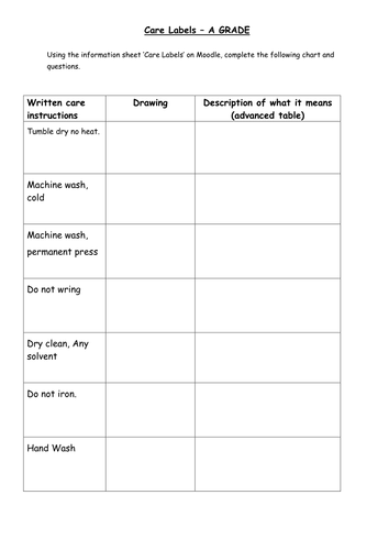 Laundry Basics Handouts Care Symbols Poster Plus Worksheet Laundry Bingo