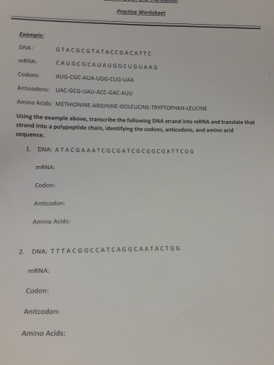 Solved Gene Expression Worksheet 4 Anticodons Name Dna