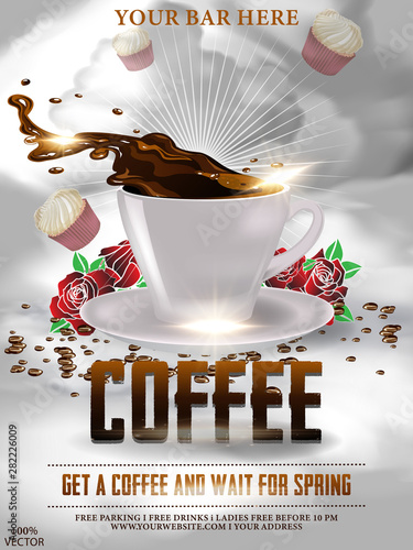 Bar Or Coffee House Invitation Flyer Template In Realistic