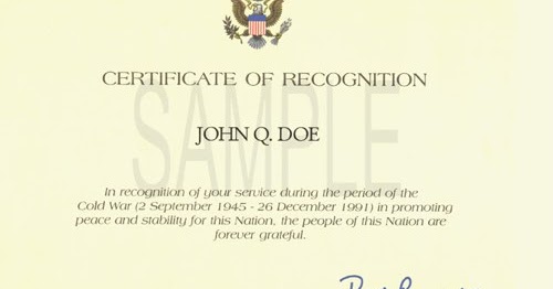 Armed forces personnel and qualified federal government civilian personnel who faithfully and honorably served the united states anytime during the cold war era which is defined as september 2 1945 to december 26 1991. It is with this in mind that the cold war recognition certificate was created. Or fax to the cold war office with your proof of service. Fill out this application and mail with.
