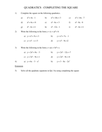 Completing The Square Worksheet Doc