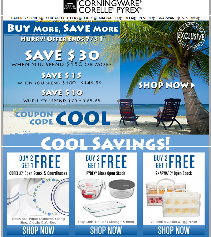Corningware is an american staple from the kitchen to the dining room table. Corelle coupons promo codes. 8375 58 arroyo circle store a058. As a member youll receive coupons and exclusive offers such as promo codes that will save you money on pyrex corningware revere and other trusted world kitchen brands.