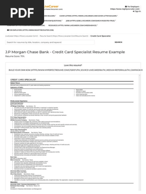Credit Card Specialist Resume Example J P Morgan Chase Bank