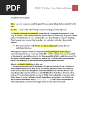 Worksheet 1 The Nature Of Crime Manslaughter Mens Rea