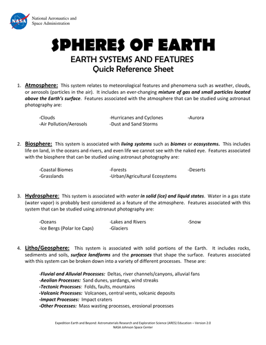 Earth Spheres Interactions Worksheet