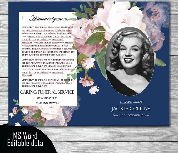 8 jan 2020 funeral programs for women funeral programs funeral template memorial program funeral brochure order of service diy funeral program memorial programs for women memorial template memorial service for woman program order of service for women. If youve hunted around for free funeral program templates youve likely discovered that most of the links you find are not free at all. Description this bi fold funeral template which can be instantly downloaded edited by you and printed on your home computer. Pink floral 4 page funeral program letter a4 size included microsoft word template only editable with microsoft word for pc or mac.
