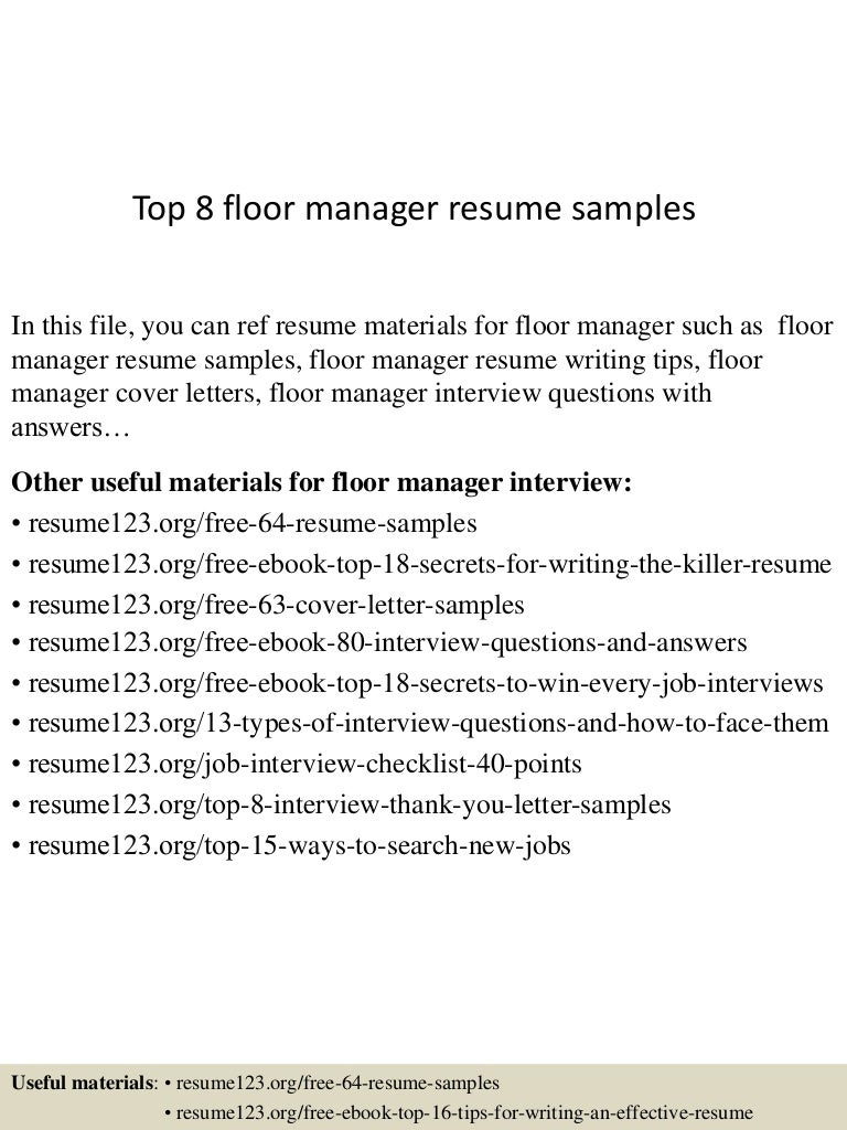 Tailor your resume by picking relevant responsibilities from the examples below and then add your accomplishments. Floor managers are involved in supervising various activities that happen on the retail sales floor. Resume samplesthis page provides you with floor manager resume samples to use to create your own resume with our easy to use resume builder. This job profile is a basic one but involves important roles and responsibilities such as carrying out all the activities that ensures a smooth workflow.