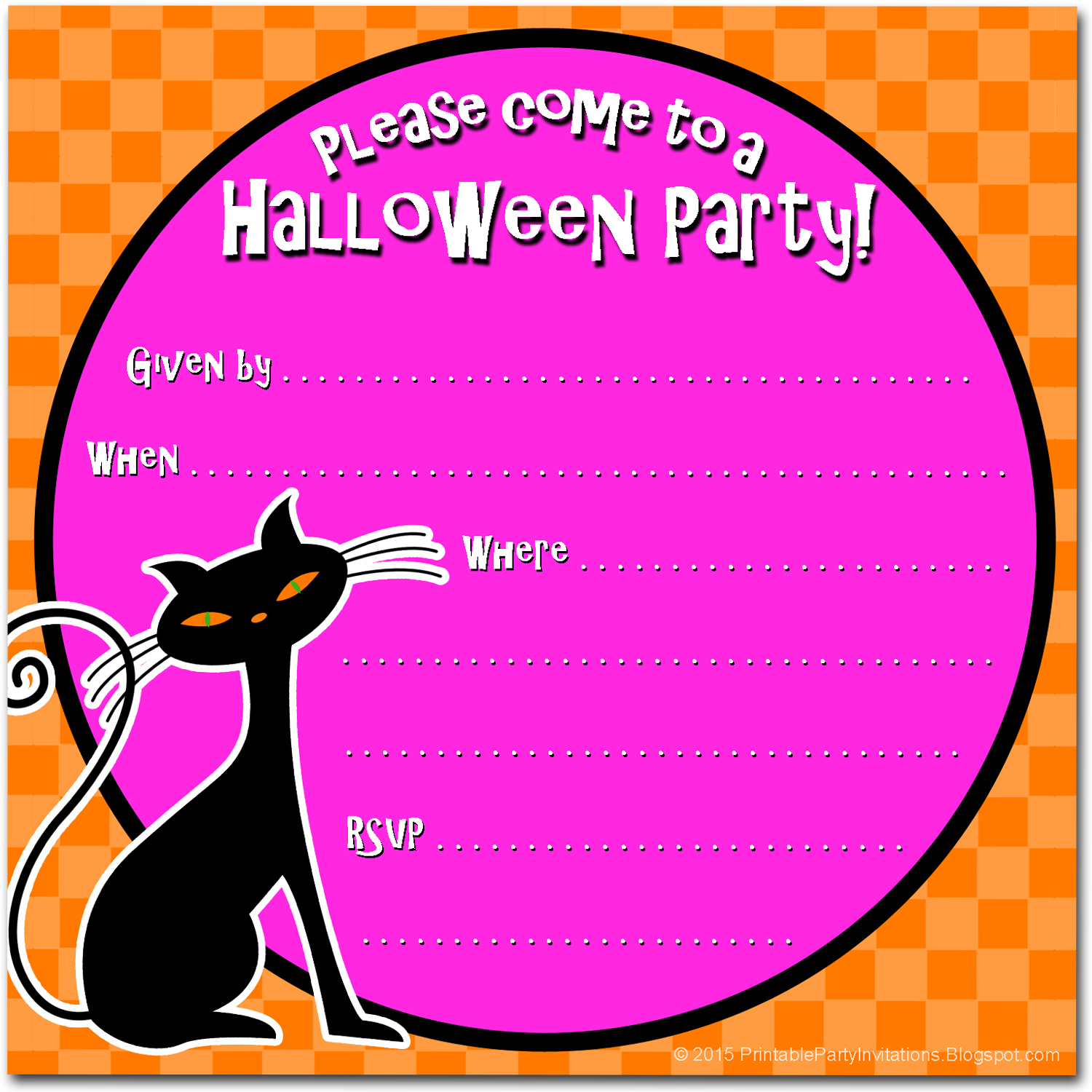 Free Printable Party Invitations Black Kitty Cat Halloween