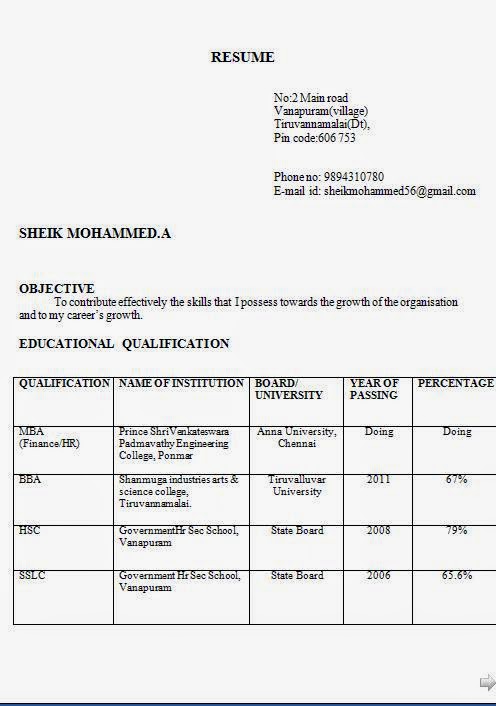 Mba Hr Fresher Resume Format Templates At