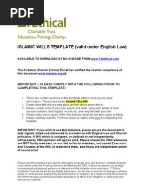 Islamic Last Will And Testament Template