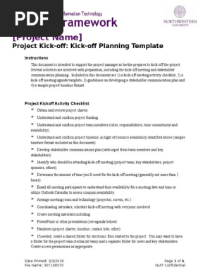 Fillable Online Project Kick Off Kick Off Planning Template