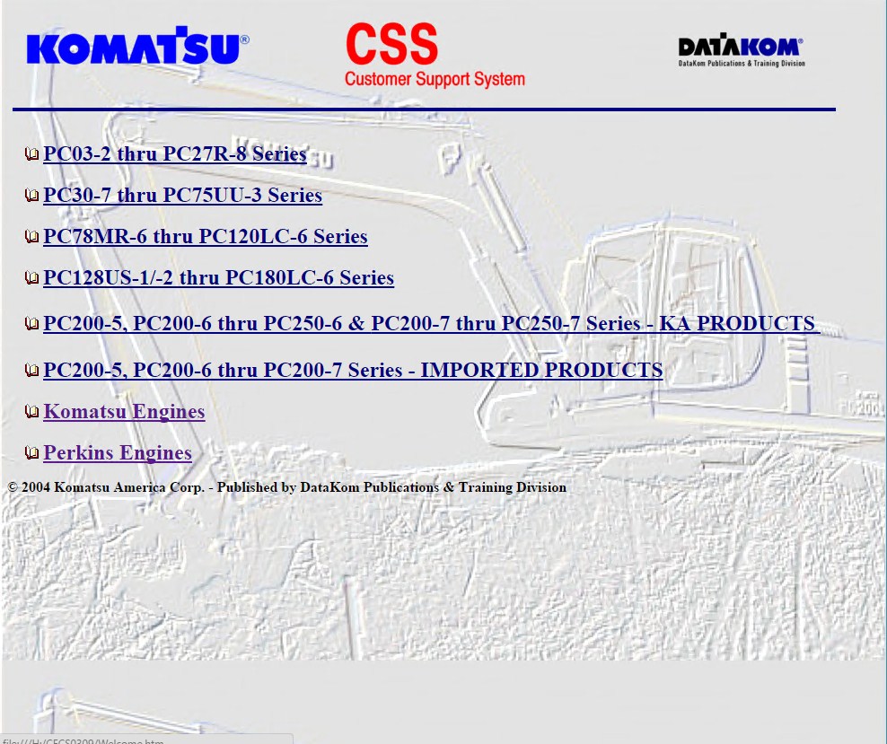 Komatsu Excavator Parts Manual