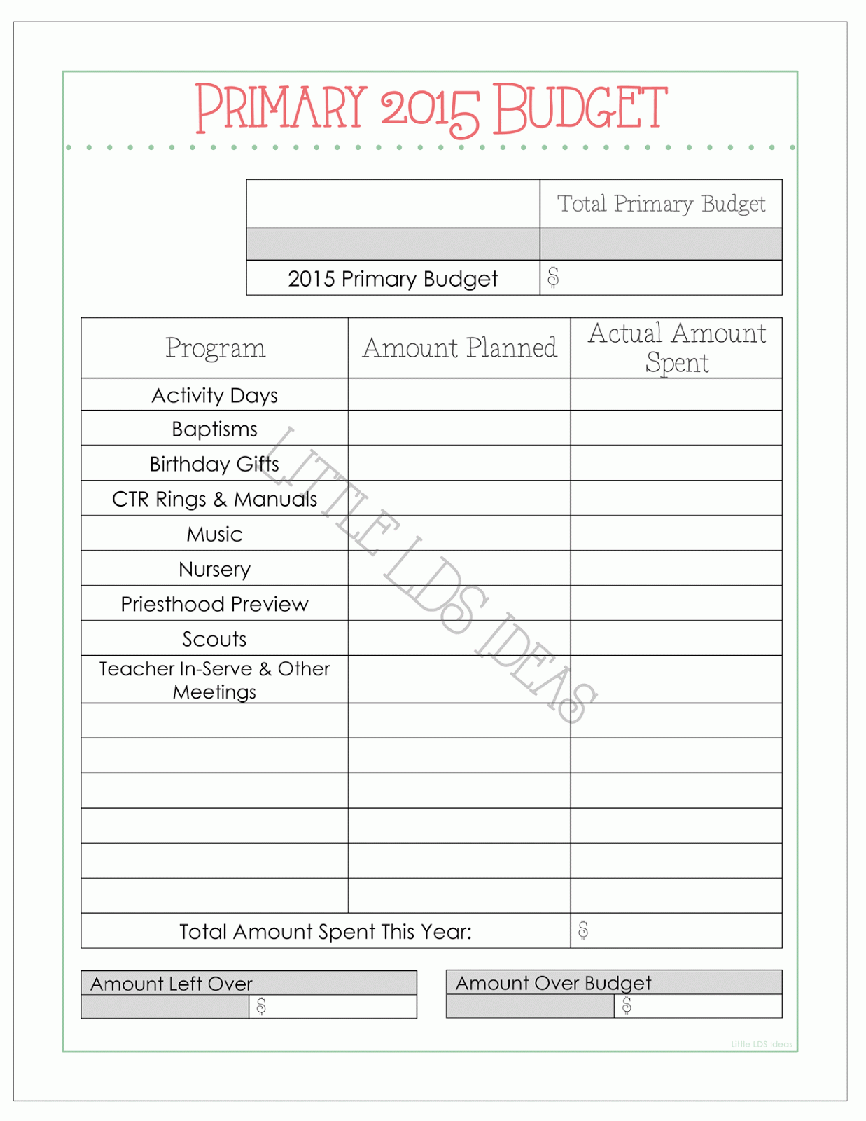 Lds Church Family Budget Worksheet Excel Blank Printable Pdf
