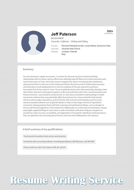 Linkedin profile and resume service. Like our traditional resume writing services our linkedin profile services allow you to work one on one with a professional writer experienced in your career field. Order our linkedin writing service and we will give your online profile the boost it needs to get you the job you deserve. See who you know at resume writing service leverage your professional network and get hired. Join linkedin today for free.