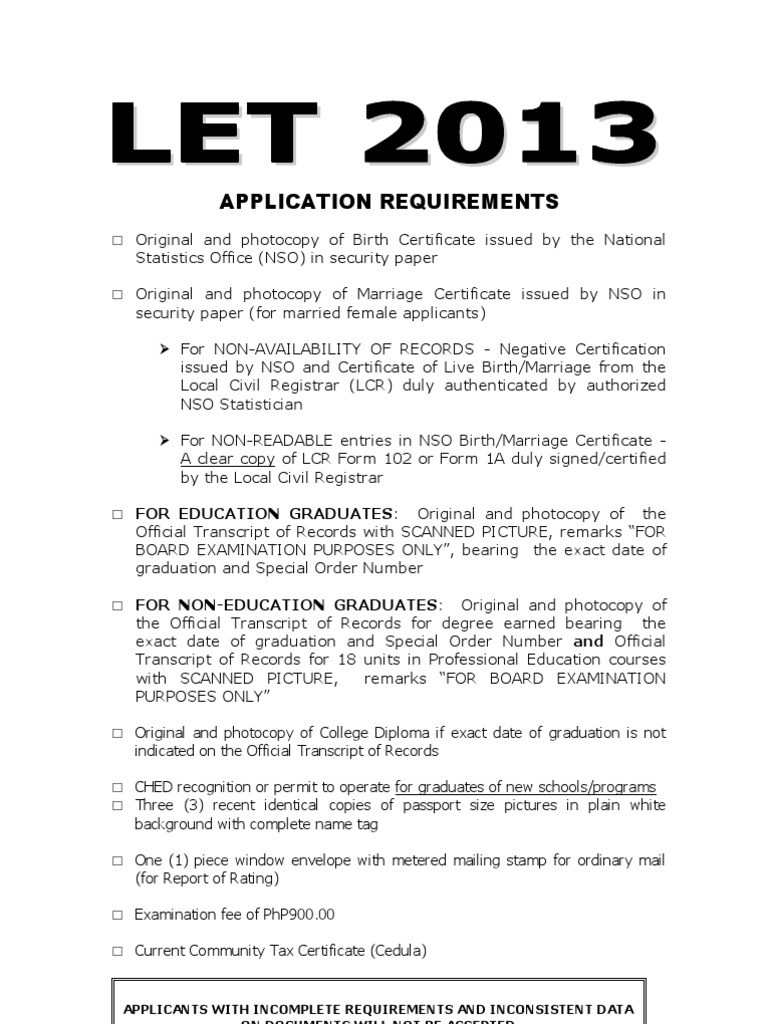 Let 2013 Application Requirements