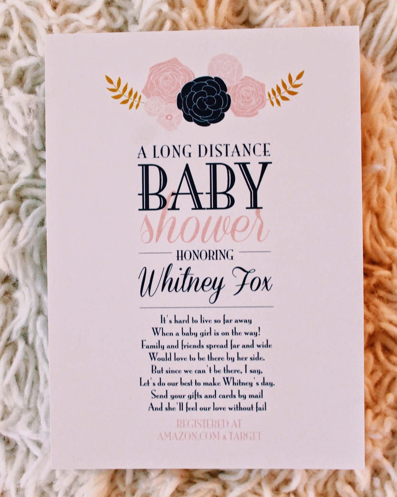 Feel free to re use the wording or re pin. Long distance baby shower invitation i wrote this cute little poem to explain how the baby shower works. Long distance baby shower by mail invitation. Besides the food the shower consisted of each invitee showing what they had bought for the baby.