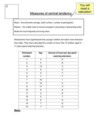 Measures of central tendency. Lesson initiator what is the purpose of finding an average 2. Measures of central tendency and dispersion. Interesting word problems are included in each section.