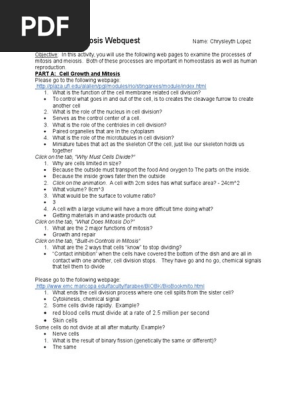 Mitosis And Meiosis Webquest Mitosis And Meiosis Webquest