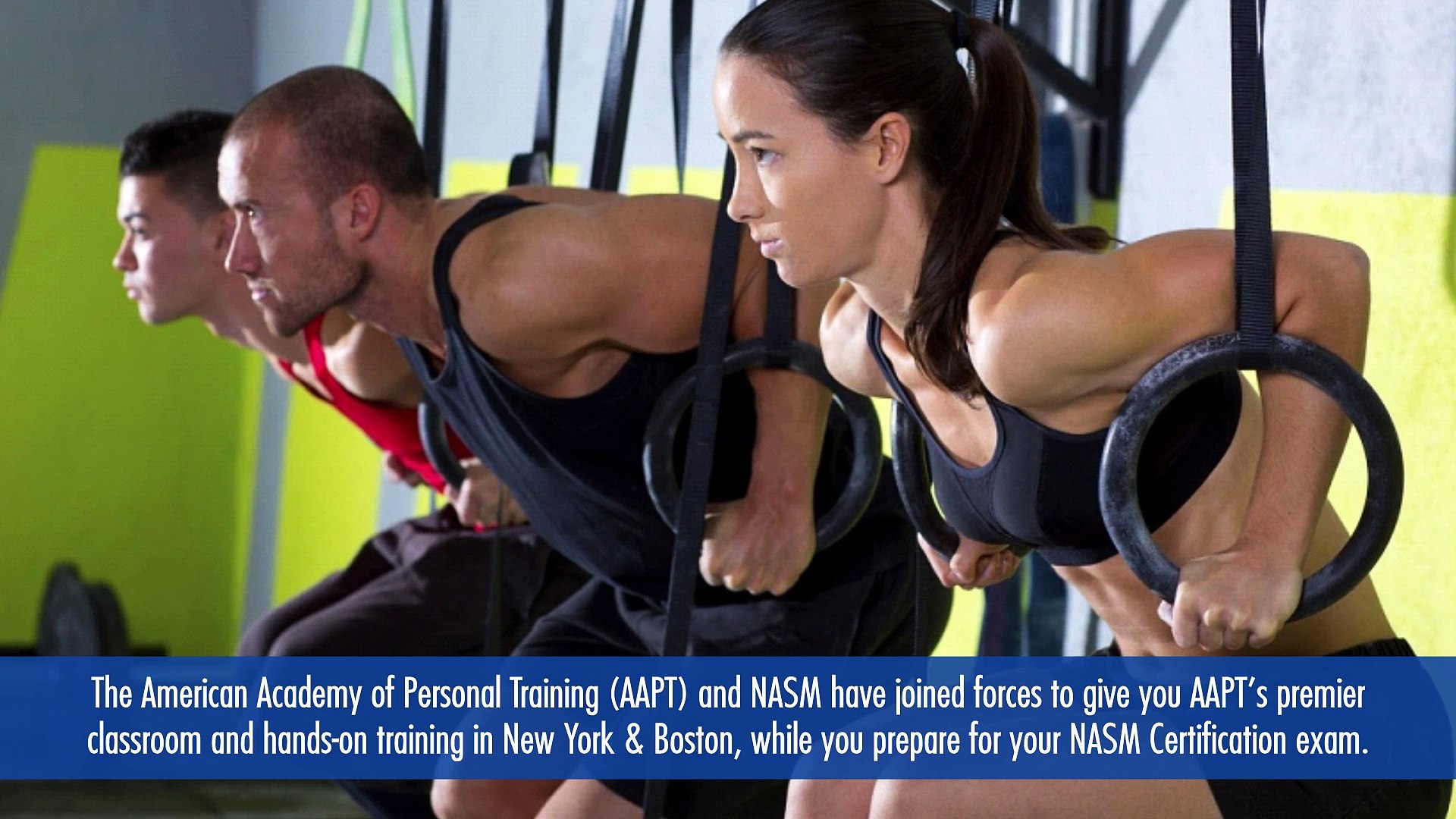 Nasm is the premier evidence based certified personal training program founded on the proprietary optimum performance training opt model. At nasm your success is our business. Our partnership with the national academy of sports medicine nasm means that aapt fitness trainer students can earn their way to personal training certification with the help of our personal training programs in nyc. You also will qualify for the nasm cpt certification requires a nasm exam.