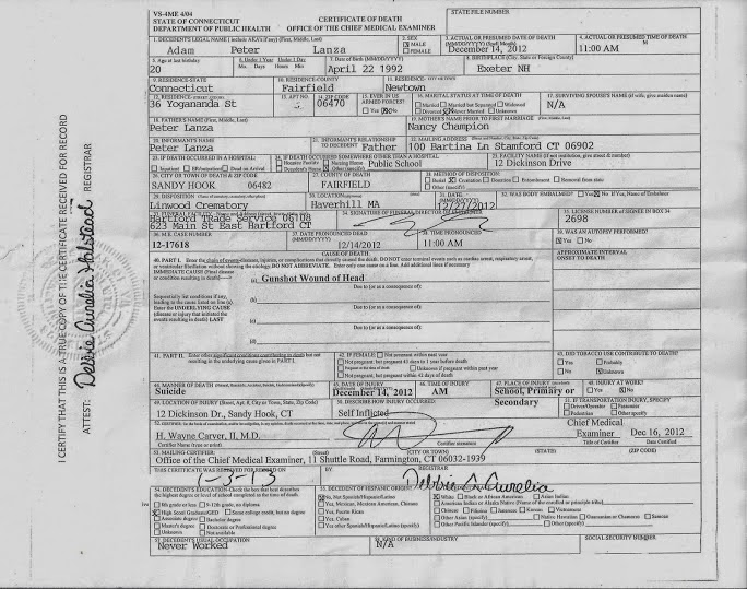 They contain information such as birth date date of death cause of death as well as vital information like who the persons parents were and what year they were married. This website provides an index to the newtown vital records for the years approximately 1852 to 1927. The death certificates of all twenty six victims as well as adam lanza and his mother can be ordered from newtown by anyone. The newtown connecticut town clerk is seeking to deny newspapers from viewing public record death certificates of sandy hook victims according to the newtown bee.