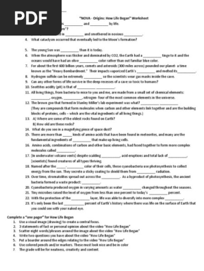 Answer the following questions while watching this video. How life began worksheet worksheet is suitable for 7th 12th grade. How life began worksheet directions. Classroom activity for the nova program origins.