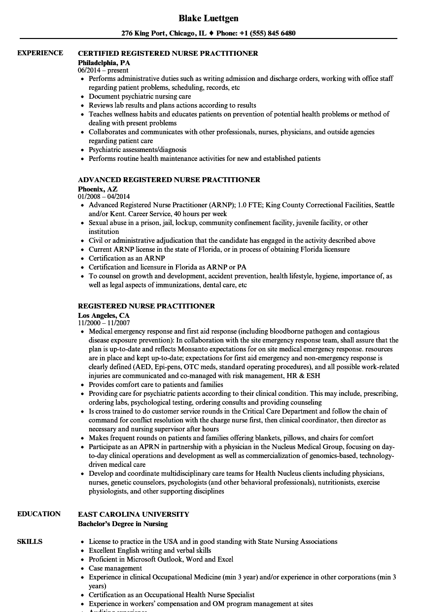 Registered Nurse Practitioner Resume Samples Velvet Jobs