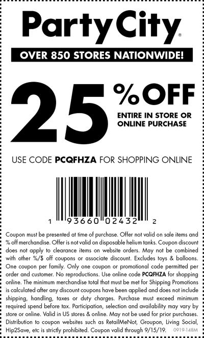 Party City 25 Off Printable Coupon Partycity Com Promo