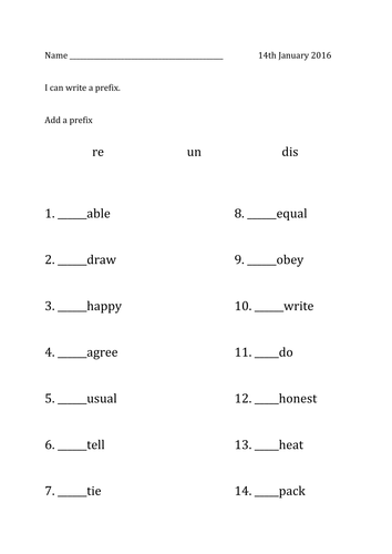 Re And Dis Prefixes Worksheet Have Fun Teaching