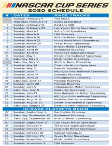 Race race date start time channel daytona clash sunday february 9 2020 300 pm fs1 duel 150s thursday february 13 2020 700 pm. The official 2020 nascar gander outdoors truck series schedule with race dates times and tv and radio broadcast details plus ticket information. Nascar 2020 printable schedule pdf the pdf link above is print friendly and looks great on a fridge. Below is what it looks like.