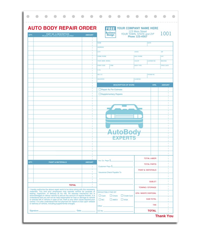 Business Forms Auto Body Repair Orders 6597 By Deluxe