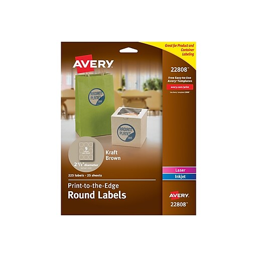 Avery Print To The Edge Laser Inkjet Multipurpose Labels 2 1 2 Dia Kraft Brown 9 Sheet 25 Sheets Pack 22808
