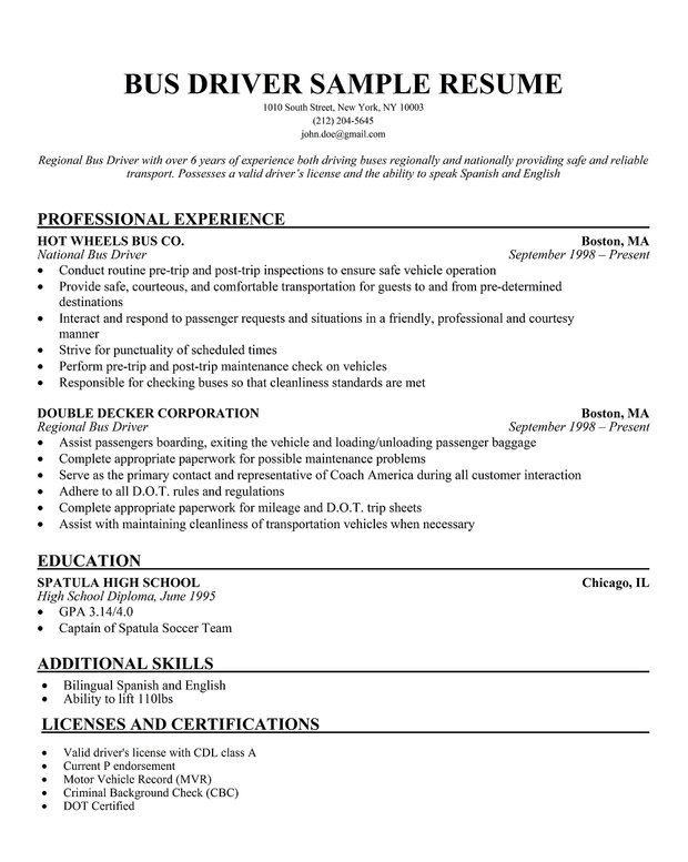 Bus Driver Sample Resume School Bus Driver Sample Resume
