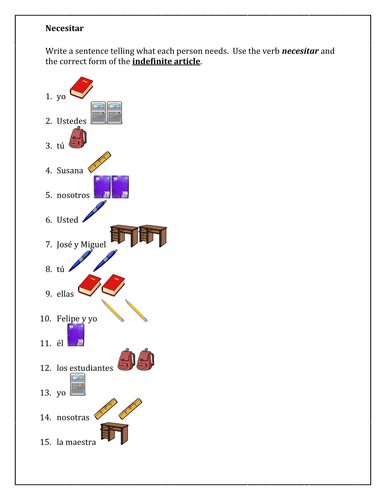 Necesitar Y Los Utiles Escolares School Supplies In Spanish Worksheet