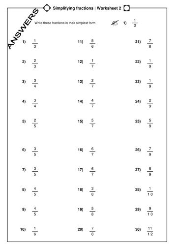 9 Worksheets On Simplifying Fractions For 6th Graders